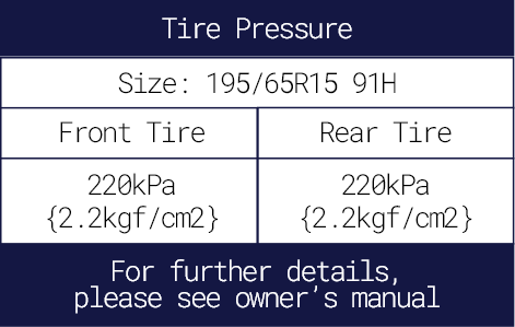 Please check the tyre pressure when the tyre is cooled to obtain a more accurate measurement. In other words, when the vehicle has been traveling for less than 2 km or parked for at least 3 hours.
