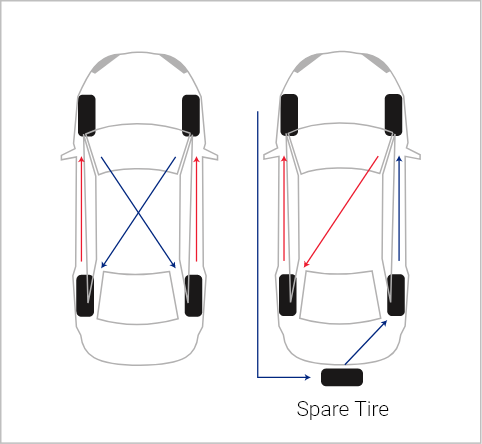 After traveling for 8,000-10,000 km, we recommend rotating tires at a service center. When rotating tires please keep in mind “4 Consistency” – same brand, size, pattern, and size because some vehicles have different front and rear specifications.